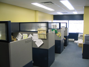 Dans les bureaux en aires ouvertes, le problème de l’intimité entre les postes de travail est omniprésent, du fait de l’absence de mur de séparation. Le choix des matériaux et la disposition du personnel et du mobilier sont alors primordiaux, afin d’assurer un maximum d’isolation entre les postes. Il est parfois possible d’intégrer un bruit de masque, dispositif que nous évitons de recommander. De nombreuses autres dispositions peuvent être mises en œuvre pour amoindrir les bruits liés aux opérations d’un bureau, tels le fonctionnement du matériel informatique ou des photocopieurs, les conversations, au téléphone ou entre collègues, ou bien la sonnerie des téléphones. Nous avons amélioré le climat sonore de nombreux locaux, bureaux de médecins, salles d’attentes, organismes publics ou entreprises.