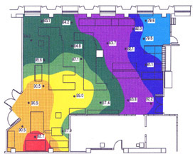 Dans les grandes salles d’impression, de reproduction ou de courrier automatisées, les niveaux de bruit peuvent être parfois assez élevés. Nous pouvons cartographier l’environnement acoustique, en mesurant les niveaux de bruit aux divers postes de travail et concevoir différents traitements ou caissons insonorisés, destinés à réduire le bruit des équipements.